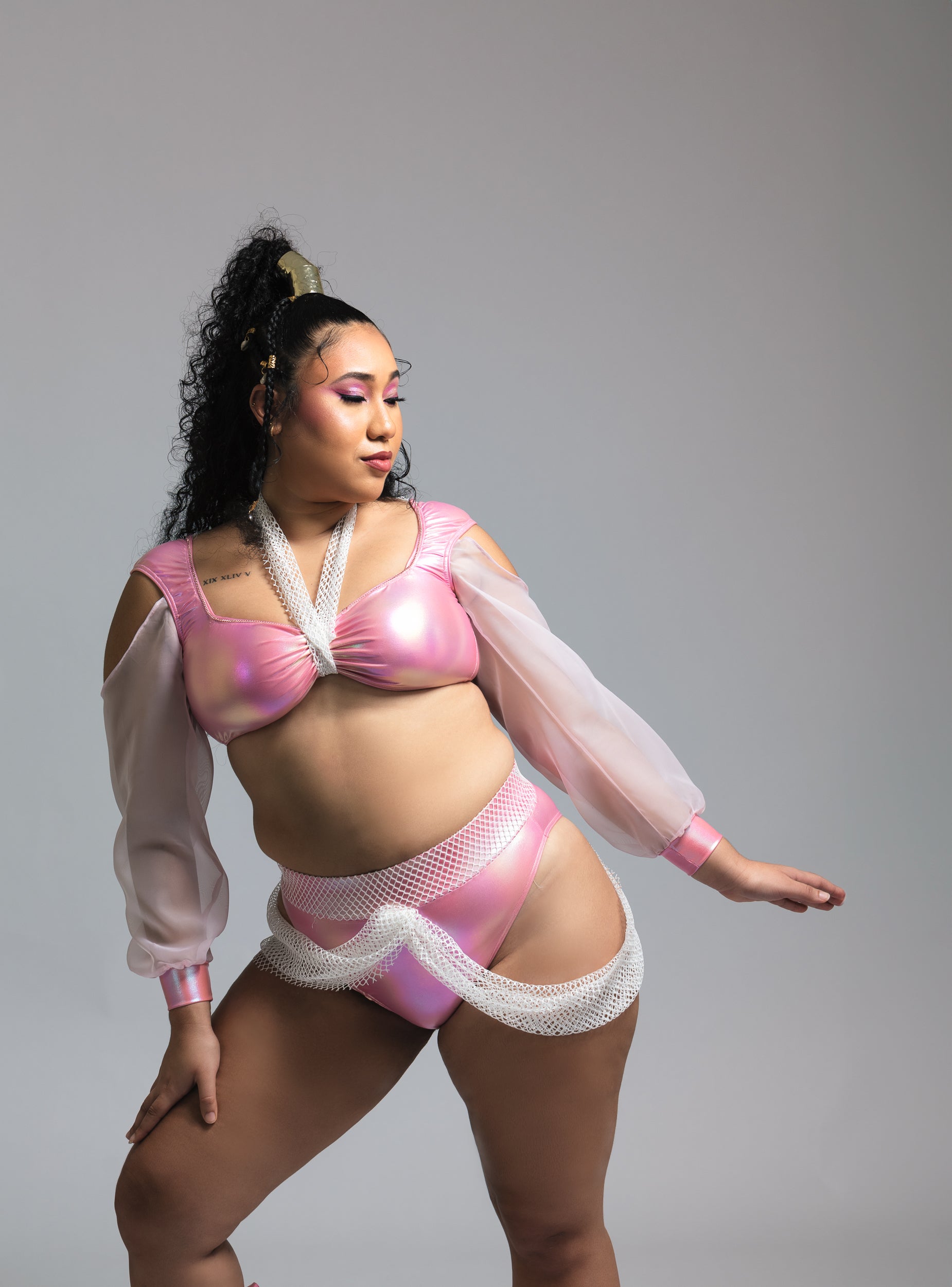 A daring silhouette accented with sharp details and rich metallic tones — crafted for the woman who owns every room she enters. Elegant, fearless, unforgettable.